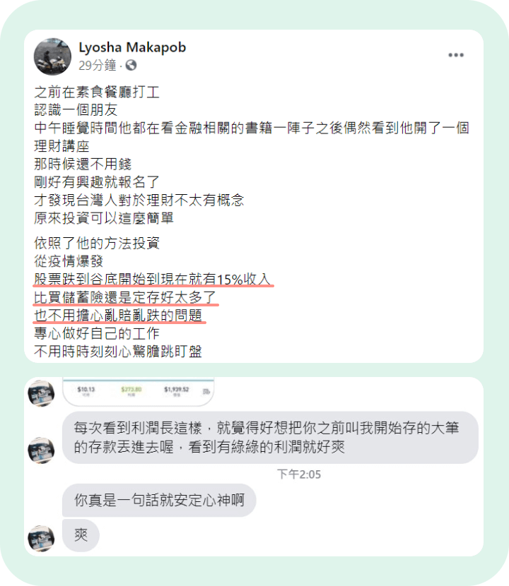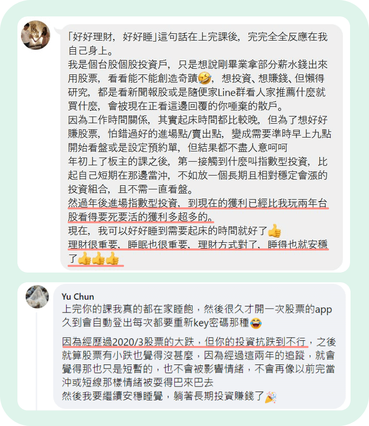 我會告訴當初我如何在股市大跌時,成功自己的資產不受影響,甚至依然穩健成長。只要掌握這點再也不怕股災,別人大虧而失眠,但你可以安心睡覺!